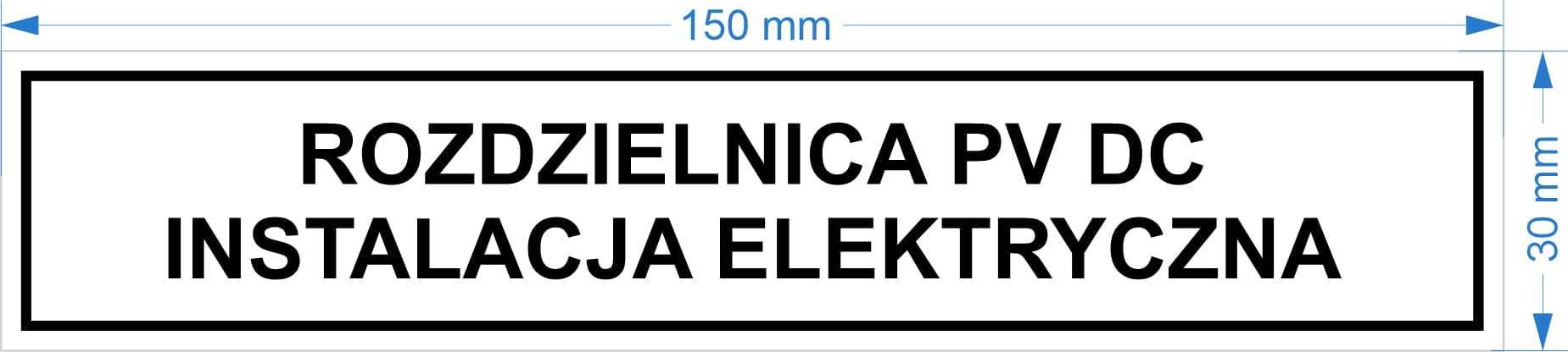 Naklejka informacyjno-reklamowa, rozmiar 15 cm x 3 cm, odporna na warunki atmosferyczne, do użytku wewnątrz i na zewnątrz, do przyklejenia na gładką powierzchnię.